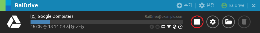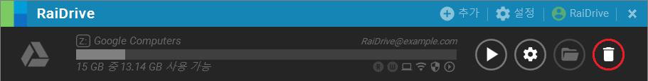1. 드라이브가 연결되어 있다면, 끊기 버튼을 클릭한 후, 삭제 버튼을 클릭합니다.