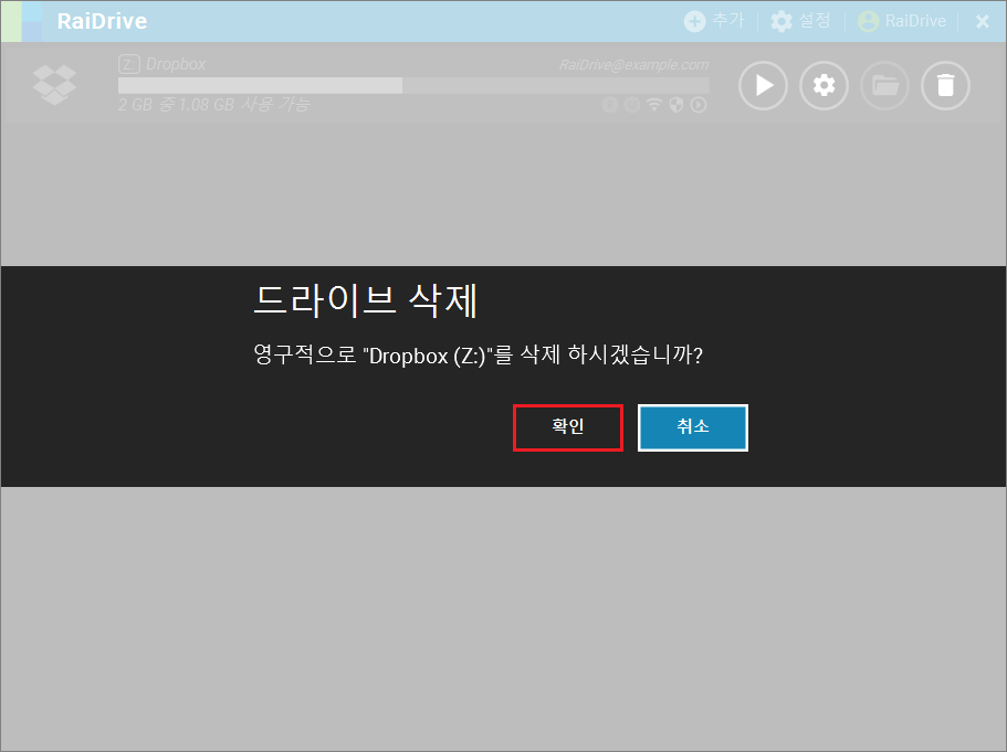 2. 확인 버튼을 클릭하면 드라이브가 연결 목록에서 삭제됩니다.