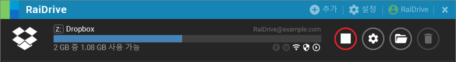 1. 드라이브가 연결되어 있다면, 끊기 버튼을 클릭합니다.