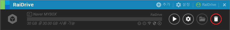 1. 드라이브가 연결되어 있다면 끊기 버튼을 클릭한 후, 삭제 버튼을 클릭합니다.