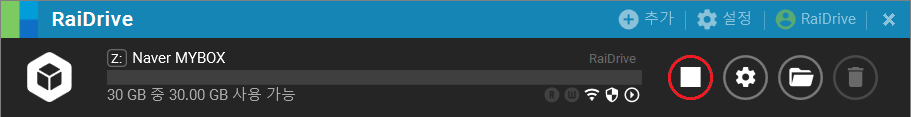 1. 끊기 버튼을 클릭하면 연결되어 있던 Naver MYBOX가 파일 탐색기에서 제거됩니다.