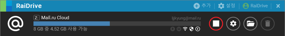 1. 드라이브가 연결되어 있다면, 끊기 버튼을 클릭합니다.