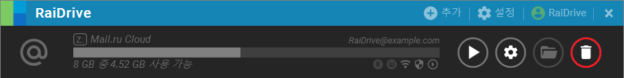1. 드라이브가 연결되어 있다면 끊기 버튼을 클릭한 후, 삭제 버튼을 클릭합니다.