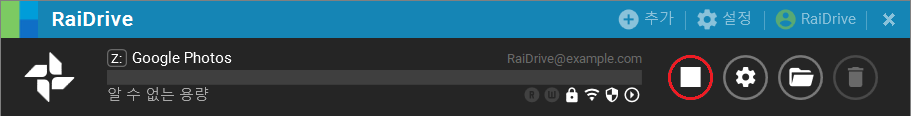 1. 드라이브가 연결되어 있다면, 끊기 버튼을 클릭합니다.
